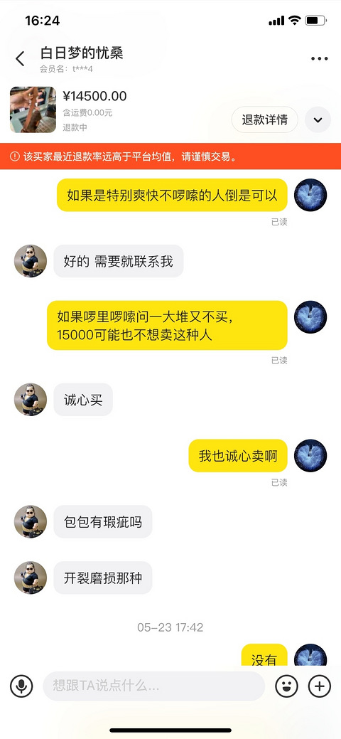 我最近在闲鱼卖一个闲置包,莫问为啥不卖给二奢店,肯定是因为给不起价格。早就一个闲鱼奇葩多,到手刀的多,所以说做出了各种可能出现的情况的假设,并且做了全面的准备,我在页面写清楚了包包所有的问题,360度无死角的照片视频,说明了不退,发货打包全程视频,挂了防盗扣,发出前再三提醒不能到手刀,不可能是假货,瑕疵都给你拍清楚说明白,所以不能到手刀,我是个特别怕麻烦不喜欢啰嗦的人,所以讲价的我都懒得回复,这个
