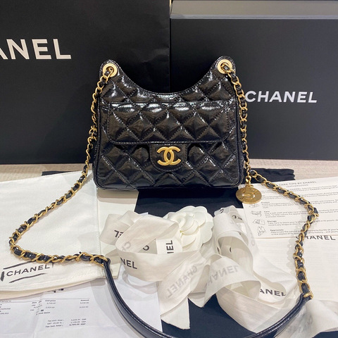 之前在网上看了众多博主的分享,没有觉得特别的惊艳,直到我见到实物,真的把我惊艳到了! 刚刚收到一只,Chanel香奈儿23C 金币 黑色嘻皮hobo ,尺寸差不多是17*19*6 ,可以放手机上身真的美呆,大小正合适,也很轻便,主要油蜡牛皮的,比较耐磨,不用小心翼翼的背香香了[ej=1F604]