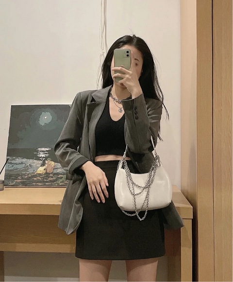 小清新的白色非常适合夏天!~~ 铁链的设计也很有Feel!