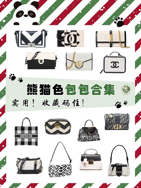 熊猫色系包包系列,黑白拼色时尚感加倍,而且超好搭衣服,简直是辣妹必入!Gucci蜂蜜竹节包设计精致华丽,充满灵动,Gucci蜂蜜包最为引人注目的就是它那立体灵动的蜜蜂,蜜蜂的翅膀镶有52颗大小不一的的白珍珠,晶莹剔透,贵气逼人,使得整个蜜蜂栩栩如生,瞬间有了生气。Prada的奶牛波点hobo腋下款潮流必备,熊猫配色可可爱爱,在人群中一下显现出来,必入普拉达~Chanel黑白香奈儿流浪这款香奈儿包
