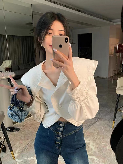 这几天都在看衬衫,哈哈,今天降温,正好可以分享一下把我最近收藏的衬衫都贡献给大家一起买~~~~ 地址大家自己带图搜哈,我都是收藏的大店,可以直接搜出来的 第1件,超大领的短款小衬衫这个搭配裤子和裙子都很好看,直接单穿就是一件很好看的款