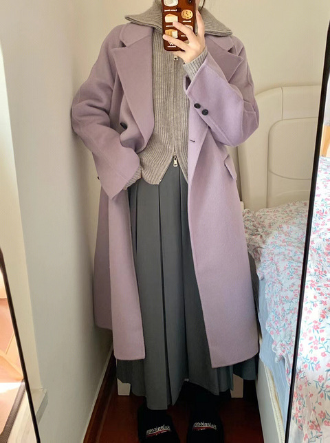 这一套又韩又温柔,紫色大衣太好看了吧
