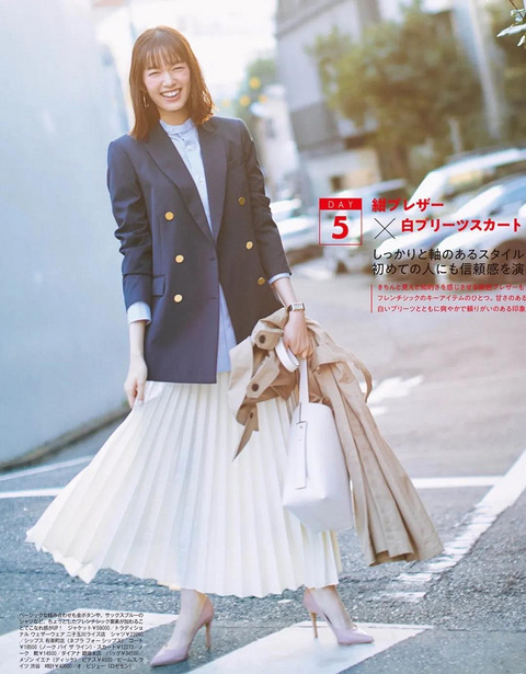日杂是我日常穿衣找灵感的地方之一抛开日杂模特多是亚洲人好借鉴不说,日杂上还有不少固定的搭配套路,很好照着模仿 西装+百褶裙 日杂中有个形容叫洗练感(简约干练,质感高级,颜色不张扬),它的代表搭配要属西装+百褶裙了~ 西装外套正式感比较强,百褶裙褶子规整,风格介于正式与休闲之间,两者搭配在一起还蛮利索的,同时又有几分灵动。是时髦上班装的打开方式之一 转自黎贝卡的异想世界