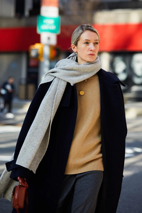 冬天穿圆领毛衣的机会很多,露出光溜溜的脖子,风一吹,直哆嗦,还蛮需要一条围巾保命的一条大围巾是一年四季的必备单品,不止是冬天,出差赶飞机、在空调房开会都习惯披上。 除了保暖,围巾也能给冬天的搭配带来很多新的乐趣。围巾对于冬装,有点类似夸张耳环或者夸张项链,搭配得好可以起到画龙点睛的效果 转自黎贝卡的异想世界