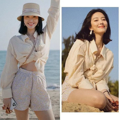 今年春天特别流行奶油感的彩色,这些粉粉嫩嫩的颜色们谁看到都会疯狂心动吧!女明星们最近的也都在穿奶油色!杨采钰最新的海边造型就穿了jacquemus的奶黄色衬衫搭配rouje的碎花短裤