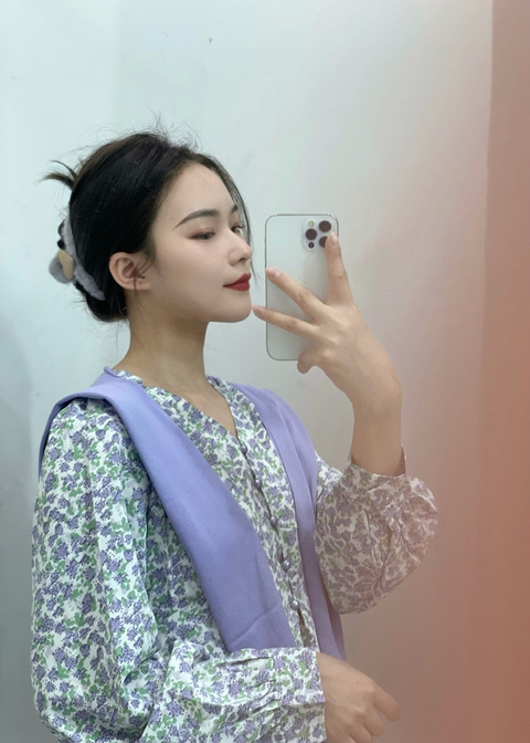 显白的紫色,全身图案,感觉就是把春天穿在身上啦,领口扣子很精致,搭配披肩韩系有格调,背后有绑带收腰设计,155以上的姐妹都可以冲~