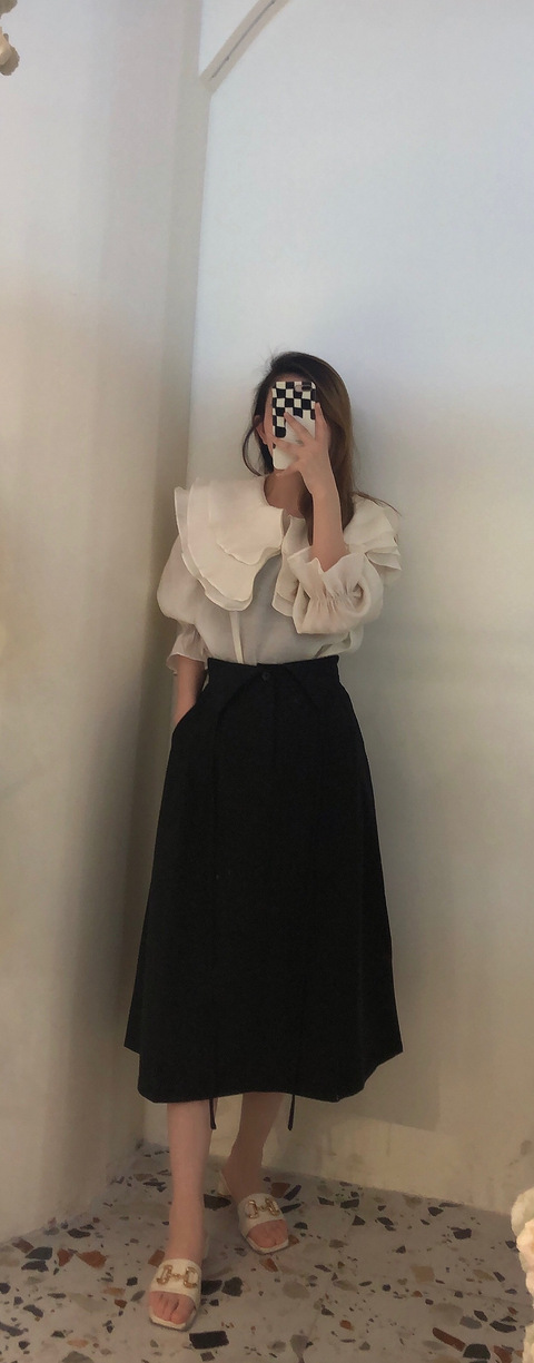 上衣:自制裙子:自制帽子:淘宝包包:芬迪鞋:淘宝袜子:深圳南油白衬衣最不挑人的穿搭,就是黑白配,这件衬衣的特别之处就是前后的抽绳设计!裙子是仿的p家的款,材质也是用的同样的降落伞材质!整个型还原度很好,版型包容很好,大屁股,完全显瘦前面的抽绳可以让衬衣的领口自然的开阔,这样会比较显瘦!袜子,蛮精致的,给整身加分不少近距离看看,抽绳给整个衬衣带来的型的改变整身颜色就是黑白,不出错,不挑人的搭配,只是