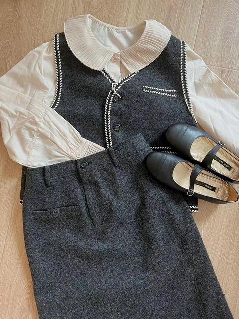 有点可爱和复古的秋季叠穿,好喜欢衬衫的小领子