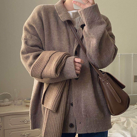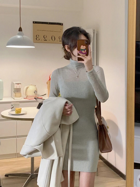 茶白色大衣好温柔,搭配针织连衣裙 一套好适合约会