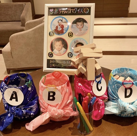 这是我在网上一场日本婚礼上看到的,把新人和别人小时候的照片放在一个相册里,然后让宾客从abcd离去选哪个是新郎小时候,选哪个就把自己用来签到的木质塞放在对印的选框里.....婚礼的时候会公布正确答案,然后新人再从正确答案的框里抽取几个答对的宾客送出小礼品,一举两得,既让宾客参与到了婚礼中来,又让大家欣赏到自己小时候的可爱颜值,哈哈,是不是很有趣啊。