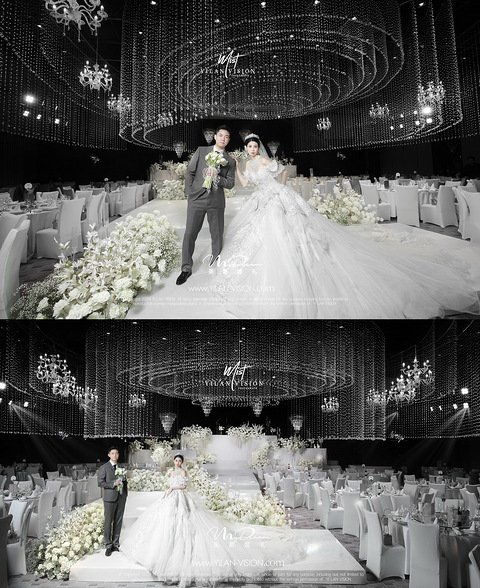 这场婚礼晚宴的布置竟然一朵鲜花都没有,全靠蜡烛和桌布的质感来烘托气氛,像满天繁星倒影在整个空间中。还挺喜欢这种“极简”的,不知道你们觉得如何?明火还是有安全隐患,我们可以选择用无火蜡烛or点子蜡烛代替。