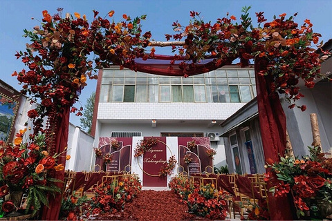 跟老公回他老家去参加亲戚的婚礼,以为会是那种很LOW的农村婚礼,没想到真香了,这就是把那种唯美的户外婚礼搬到了自家院子里,红而不俗,好看惨了