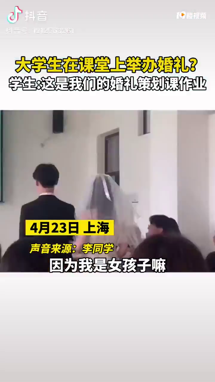 学校还能这么玩啊,婚庆课是上海应用技术大学会展专业的选修课,教授如何策划一场婚礼以及婚庆礼仪、风俗习惯等。这门课程期末课堂考核的内容就是让同学们以小组表演的形式,举行一次完整的婚礼,来体现对课程内容的理解。感觉还挺好玩的,很有意思的体验课,理解结婚的意义!