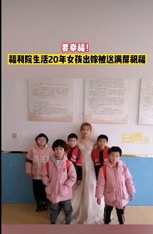 福利院女孩出嫁被娘家人的祝福看哭了,祝我们的女儿新婚快乐,2月16日,安徽蚌埠。五河县福利院生活了20年的女孩出嫁,这一天,院里照顾、陪伴她长大的叔叔阿姨、兄弟姐妹们都为其送上了对未来生活的美好祝福,而福利院门口电子屏上“祝我们的女儿新婚快乐!”的祝福语更是看哭网友,大家纷纷送出祝福:余生一定要幸福!