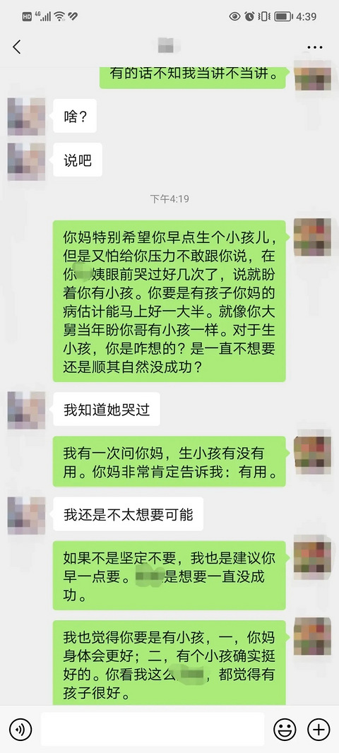 我姐的娃儿,结婚几年了没要孩子。我姐是个非常传统的女人,自从娃儿结婚以后,她就一直盼着女儿早一点生个宝宝她好帮忙照看,这几年她身体不好,才阳康,就更是着急。 我们家都是传统观念,总认为人到什么年龄做什么事情,尤其是女孩儿,该结婚结婚,该生娃生娃,结婚以后,好好经营婚姻,跟婆家好好相处,对丈夫知冷知热,对孩子全力培养,做知书达礼的贤妻良母,别一言不合就离婚。