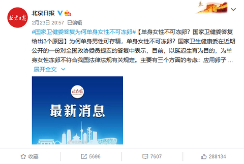 为何单身男性可存精,单身女性不可冻卵?国家卫健委答复了