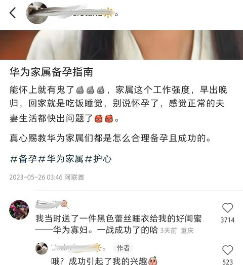 华为员工家属抱怨,备孕真的很难,找不到人。