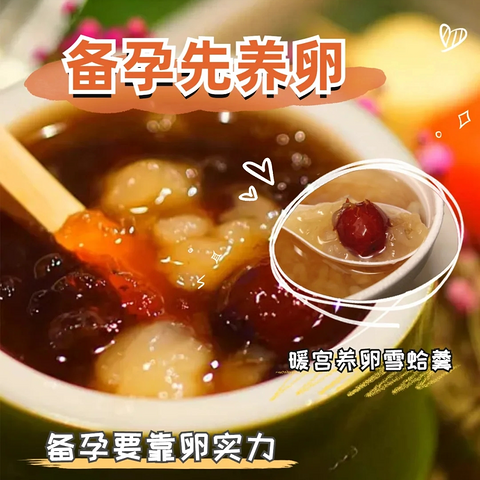 给大家分享一个汤羹,帮助备孕的女性朋友养出又大又圆的卵泡,助力好孕! 食材:雪蛤,红枣,枸杞,冰糖,牛奶 制作步骤:1. 干雪蛤洗净去杂质后用温水泡发一个晚上;2. 把雪蛤、红枣、枸杞放入玻璃碗,隔水蒸20-30分钟;3. 蒸好冷却后调入牛奶和冰糖,即可食用~ 卵子的健康在备孕的过程中特别重要,所以备孕的女性朋友一定要学会养卵巢,长卵泡~