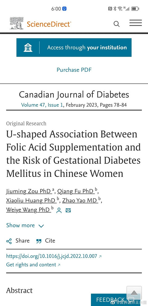 备孕和孕期补充叶酸(主要为了预防出生缺陷),以每天400μg~800μg为宜。然而,已有几个研究发现,孕妇补充叶酸与妊娠期糖尿病icon风险增加有关(但也有研究得出相反的结果,故有争议)。 一项来自中国对华中地区2家医院的1300例孕妇进行的研究(如图)发现,与每天服用叶酸400μg~800μg的孕妇相比,从未服用叶酸补充剂的女性患妊娠糖尿病风险增加228%;服用叶酸但剂量不足400μg/天的孕妇