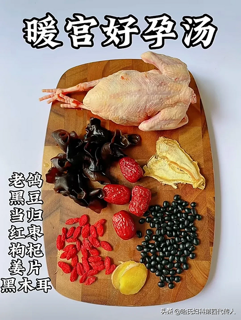给大家说一个暖宫好孕汤。暖宫助孕、促卵泡发育、养内膜。宫寒、卵泡不发育、内膜薄、难孕育的朋友们可以试一试这个食疗汤方,会有一定的调理作用! 暖宫好孕汤准备材料鸽子、黑木耳、红枣、当归、黑豆,将所需材料清理干净后,放入锅中炖煮2小时左右即可,喝汤吃肉。鸽子外号叫西凤,繁殖能力很强,鸽子肉富含蛋白质,可以增强体力!提高免疫力!黑木耳活血化瘀,红枣补中益气,当归补血活血,能温暖子宫提高受孕率!黑豆:含有