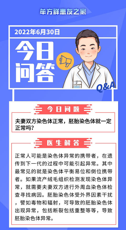 夫妻双方染色体正常,胚胎染色体就一定正常吗?