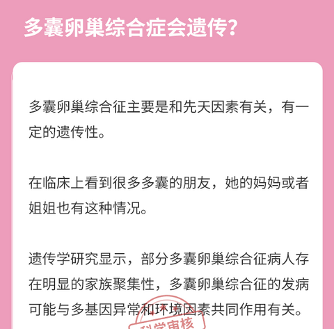 今天才知道原来多囊卵巢综合征会遗传。有没有多囊的姐妹?问问自己的妈妈,看是不是真的呀?