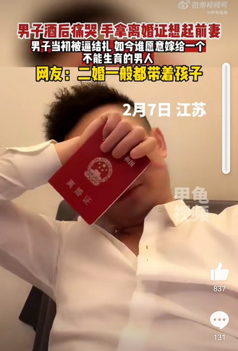 结扎了还能恢复吗?男子想起被前妻逼结扎崩溃痛哭