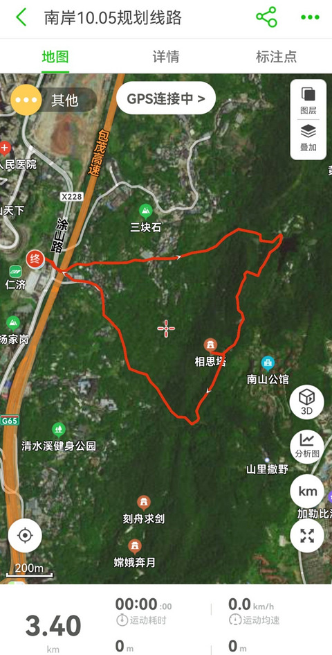 10月5日慢摇休闲爬南山【出发时间】下午13:00【结束时间】下午16:00【汇合地点】环线仁济地铁站2号出口坝子【活动难度】★【行进速度】龟速【路程长度】约3km,(泥土小路、步道石板路)【大致线路】仁济地铁站—莲花村委—相思塔(观渝台)—凉水井步道—莲花村委—仁济地铁站【建议装备】适合长距离徒步的鞋子、速干衣。【费用】无【温馨提示】户外有风险,自主搭伙同行。保险自买,风险自担,责任自负。注:自