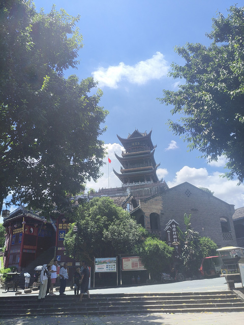 安居古镇一直久闻大名,以前我以为比较小,没想到里面街还挺长的。周六正好和朋友就过去了。自己从人和开车过去,不多一会儿就到了。在停车场停了车,坐的5块钱的摆渡车去古镇上。当然你也可以自己开车到镇上找个店门口停车,省个停车费。摆渡车一直把我们拉到城隍庙下车。去城隍庙的路上,基本比较萧条。 夏天来虽然天气比较热,但是风景是绝对ok的。
