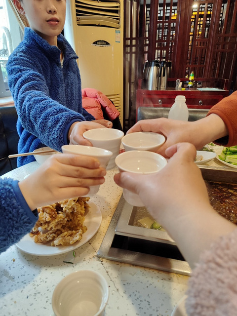 手艺先不说,牛肉排骨鸡翅豆干,加上一清二白的豆腐白菜汤,这搭配,配个表情包。