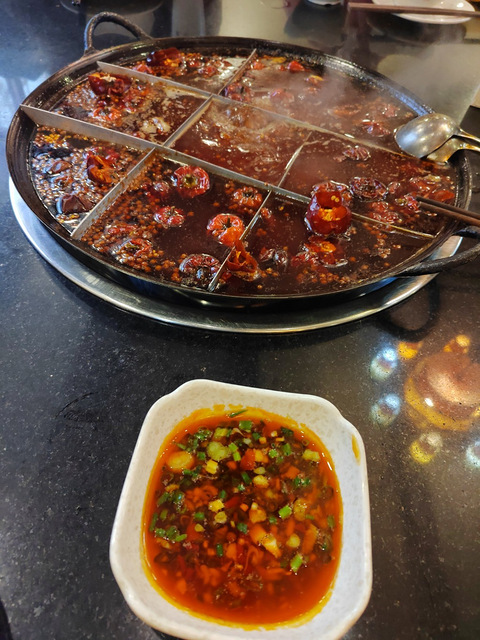 点了几个菜都还是可以,唯独这个毛肚的蘸料味道太拉垮了,清汤寡水还很咸,没得油辣子的香味,简直踩雷,最好吃的还是这个火爆肥肠