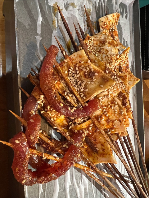 最开始是看见抖音的霞姐推的雯二烧烤那个腰花好巴适[ej=1F60D]结果大众一收评分3.8就没得兴趣了…饭梅子太多!好朋友先去踩了一次说还可以第二个周末就约了去二刷。首推腰花两个味道麻辣和双椒,黄喉、脑花、五花肉、烤牛油、小年糕、糟辣椒肉丝炒饭必点!整体感觉还是可以就是我门口淡有点咸了[ej=1F612]喝了他家两杯暴打柠檬才稍微好点!生意很好排队了一个多小时上菜快!不要点太多免得那个双椒泡起真的