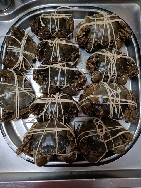 今年美团买吃的真心便宜。三两公二两母三公两母的5只大闸蟹抢成9.9一份。囤了10来份,慢慢吃。吃到后面就搞花样了,又去提了两份,有一断脚,老板就多送了一只。唯一的不好就是他家不绑蟹,得拿回来自己绑。