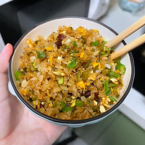 看到网友@橙月分享的,绝了绝了,顺便学习一哈 请大家自助点餐酸豆角线椒圈脆哨蛋炒饭