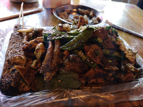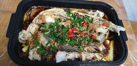 看完视频,买菜开干,味道还不错!哈哈哈哈哈!就是鱼被烤箱烤变形了!