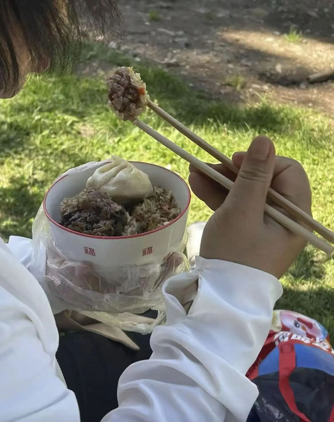 各位网友的爸妈,堪比哆啦A梦的口袋! 还没爬上去我妈从感觉有十几斤重的大背包里掏出来一碗饭……一碗饭……