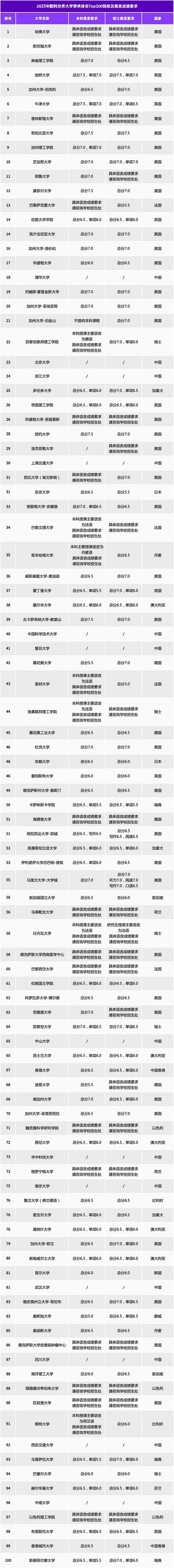 雅思官方公布2025年软科世界大学学术排名Top100 语言要求留学方向的娃重点关注
