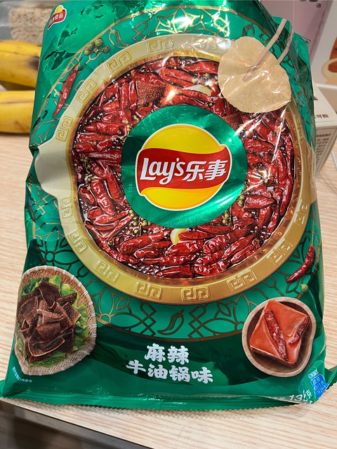 真的太想吃火锅了,结果我们这边外卖都点不到火锅,就外卖了一个乐事的麻辣牛油味薯片,真的是解馋。乐事的口味越来越多了,你们有其他推荐吗?