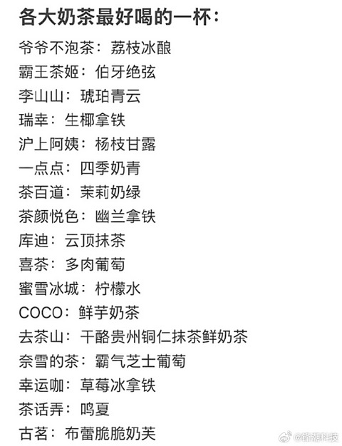 网友总结各大奶茶最好喝的一杯,你赞同吗?