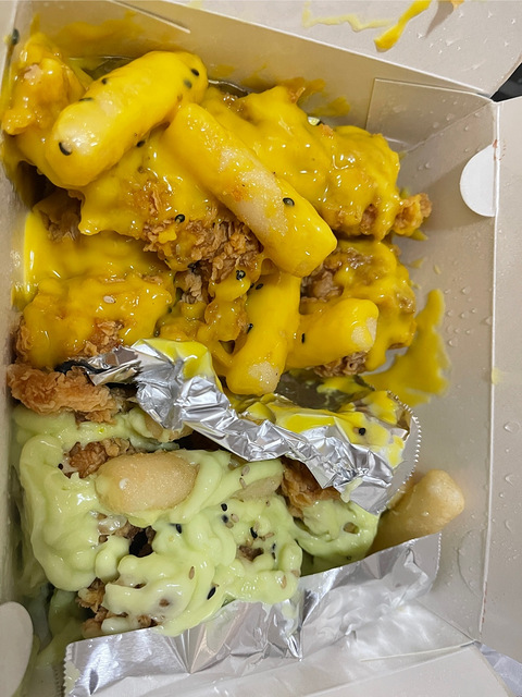 咸蛋黄味和牛油果味的炸鸡真不错啊