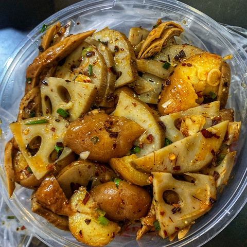 这家卤菜以前就是摆在黄桷坪邮局门口的路边摊,二十几年前放学都会买几块钱的那种。现在开在了干锅那一排的中间,洋芋坨坨卖的很快,要早点去买!