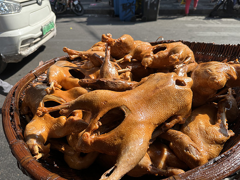 走走走,去菜市场!今天打卡江北观音桥的建新市场,本来是去买粉蒸芋头丝的,结果哪晓得今天被建新市场的卤微微价格震惊了! 12块钱一斤的卤微微,多得是顾客买。怎么会这么便宜,我习惯买鹅堂的卤微微,买半只都是40-50块钱。 今天看到的卤微微价格也不止是12块钱一斤,还有13块钱的。路边摆起卖的基本上是12块钱一斤,有店铺的就是13块钱一斤,只有一家店铺是12块钱一斤。 这是路边的卤微微,12一斤。 同