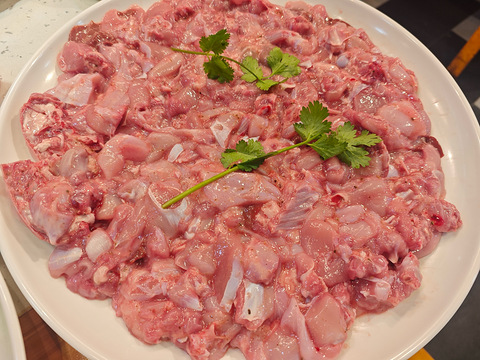 在重庆一般说起吃火锅。肯定第一考虑的是老火锅。这家鲜兔火锅是我在去朋友家路上发现的。店看起挺敞亮。正好和朋友提了一句。她说可以去试试。听说他们这个位置以前开的店基本没超过三个月,这家已经开了一年多了。看来是有实力。一进店老板很热情的招呼。先介绍了他家特色是鲜兔。他们不同于老火锅。用的是一次性锅底。素菜9.9一桌随便吃。他看我们就两个人还主动介绍了有团购。这点非常不错。 他们兔子是现点现杀。端上特