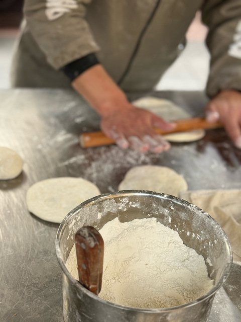 被朋友安利了北环的公安锅盔,专门来买两个小伙子在卖,据说是专门去当地学的有芽菜,鲜肉几种味道现点现擀,师傅的动作很快