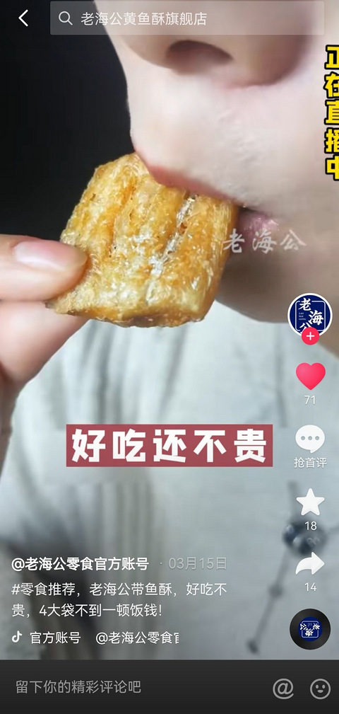 都说世界的尽头是带货老海公真是大数据推送给我最频繁的小黄鱼不太喜欢,就买的带鱼酥看看这金黄酥脆的口感