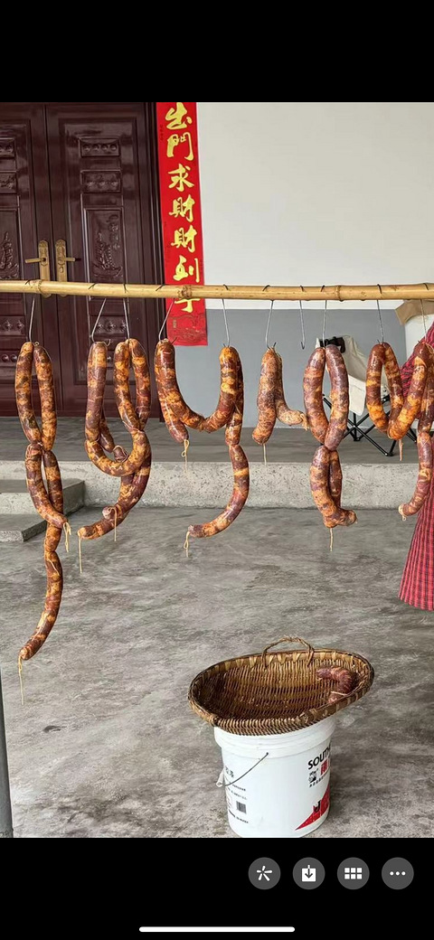 元旦节开心回村吃刨猪汤和表哥家一家半只猪肉妈咪说 今年有很多肉肉肉可以灌很多香肠然后上周香肠灌好了妈咪在村里弄好了说起码100节还拍照汇报了一下见下图