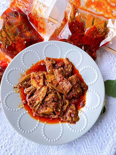 最喜欢这些麻辣凉菜了这家的味道是我喜欢的麻辣中带了一丢丢丢的回甜重点是一斤分成了四个小袋一次一袋,吃起很方便,老板很贴心