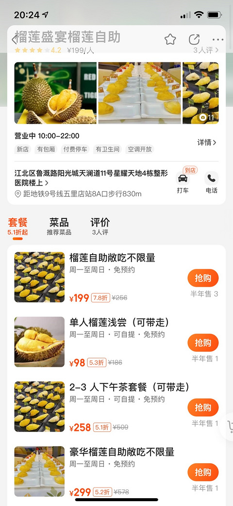 开业了,186/位的榴莲自助,榴莲控你们会去吃吗?