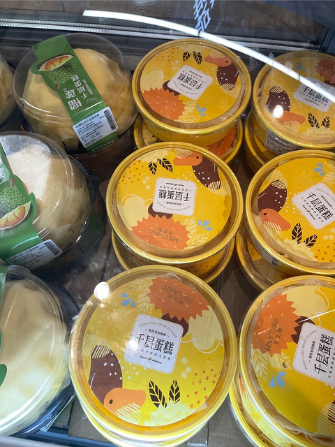 逛超市朵朵妹想吃榴莲千层19.9元,这个价格不错再一看还是华生园的可爱的蛋糕还不少价格也挺好