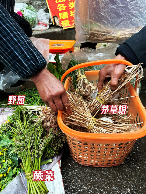 周末去逛建新市场,很多老年人带了自己挖的野菜来卖,真的非常心动,我买了一大堆。先上图给你们看看,顺便说下价格。 茅草根5块钱一把,蕨菜2块钱一把,野葱2块钱一把。 建新市场是个神奇的菜市场,天天都在赶场,周末三天人是最多的,你能想到的菜,基本都能买到。特别是有很多老年人经常拿自己种的菜来卖,又新鲜又便宜,最近的春菜大概价格都是2-5块钱。